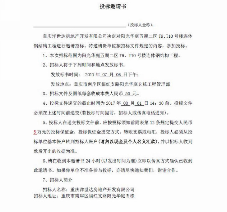 陽光華庭五期二區(qū)T9、T10號樓連體鋼結(jié)構(gòu)工程招標(biāo)文件
