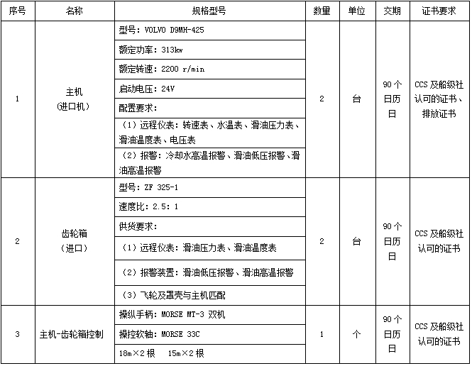 項目名稱:南部縣地方海事處33米應急救援艇機電設備采購