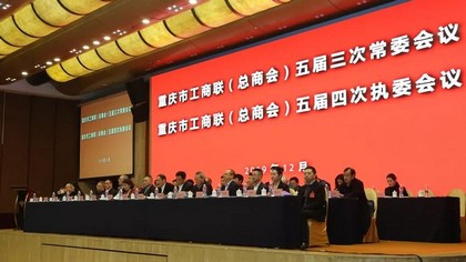 重慶市工商聯(lián)(總商會)五屆三次常委會議、五屆四次執(zhí)委會議于2019年12月26日下午在金源酒店隆重召開。市委統(tǒng)戰(zhàn)部領(lǐng)導(dǎo)、駐市委統(tǒng)戰(zhàn)部紀(jì)檢監(jiān)察組負(fù)責(zé)人和市委統(tǒng)戰(zhàn)部經(jīng)濟(jì)處負(fù)責(zé)人;市工商聯(lián)(總商會)全體會領(lǐng)導(dǎo)、常委、執(zhí)委;市總商會名譽(yù)會長、顧問等共計(jì)300余人參加,集團(tuán)公司董事長楊勇參加了會議,本次會議由市委統(tǒng)戰(zhàn)部副部長、市工商聯(lián)黨組書記向遠(yuǎn)春主持召開。
