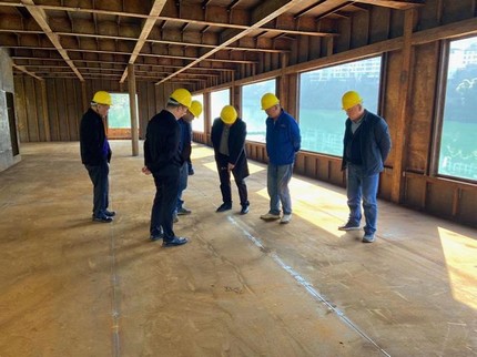 11月11日,集團公司楊勇董事長陪同彭水縣羅遠江副縣長視察彭水九黎船舶建造項目現場。該項目是集團公司旗下子公司重慶帝力游艇制造有限公司承接的彭水九黎旅游運輸服務有限公司的2艘異地船舶建造項目。游船總長44.5米,型寬10.6米,型深3.1米,吃水1.8米;躉船總長48米,型寬13.8米,型深2.8米,吃水1.8米。