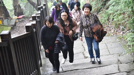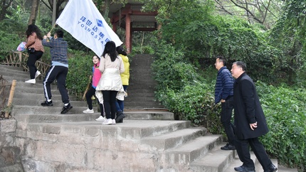 一路上,層巒疊翠,在山色映襯之下,同事們沿著古樸的石階攜手前進。 “加油”、“努力”,一路上大家相互鼓勵、勠力同心,于上午11時30分,順利到達了本次登山的終點---黃桷埡老街。