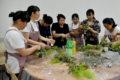 活動(dòng)現(xiàn)場(chǎng),同事們圍在桌邊。手工材料包中,新鮮的艾草、輕巧的竹編、金色的鈴鐺、五彩的流蘇,寄托著大家濃濃的端午祝福。只見,同事們靈巧的雙手在竹編和艾草間來(lái)回穿梭,大家一邊相互交流一邊認(rèn)真制作掛件。不一會(huì)兒,一個(gè)個(gè)精致美觀的艾草掛件就紛紛成形。一縷縷艾草清香沁人心脾,現(xiàn)場(chǎng)歡聲笑語(yǔ)不斷。