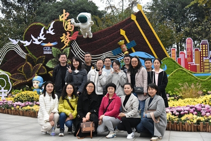 “采菊東籬下,悠然見南山”。初冬微寒時節,重慶南山植物園中的菊花正值盛放之中。11月24日下午,集團本部、房產公司、平偉公司的四季度壽星與公司同事們一起到南山植物園參觀“重慶市第二十五屆菊花藝術展”。